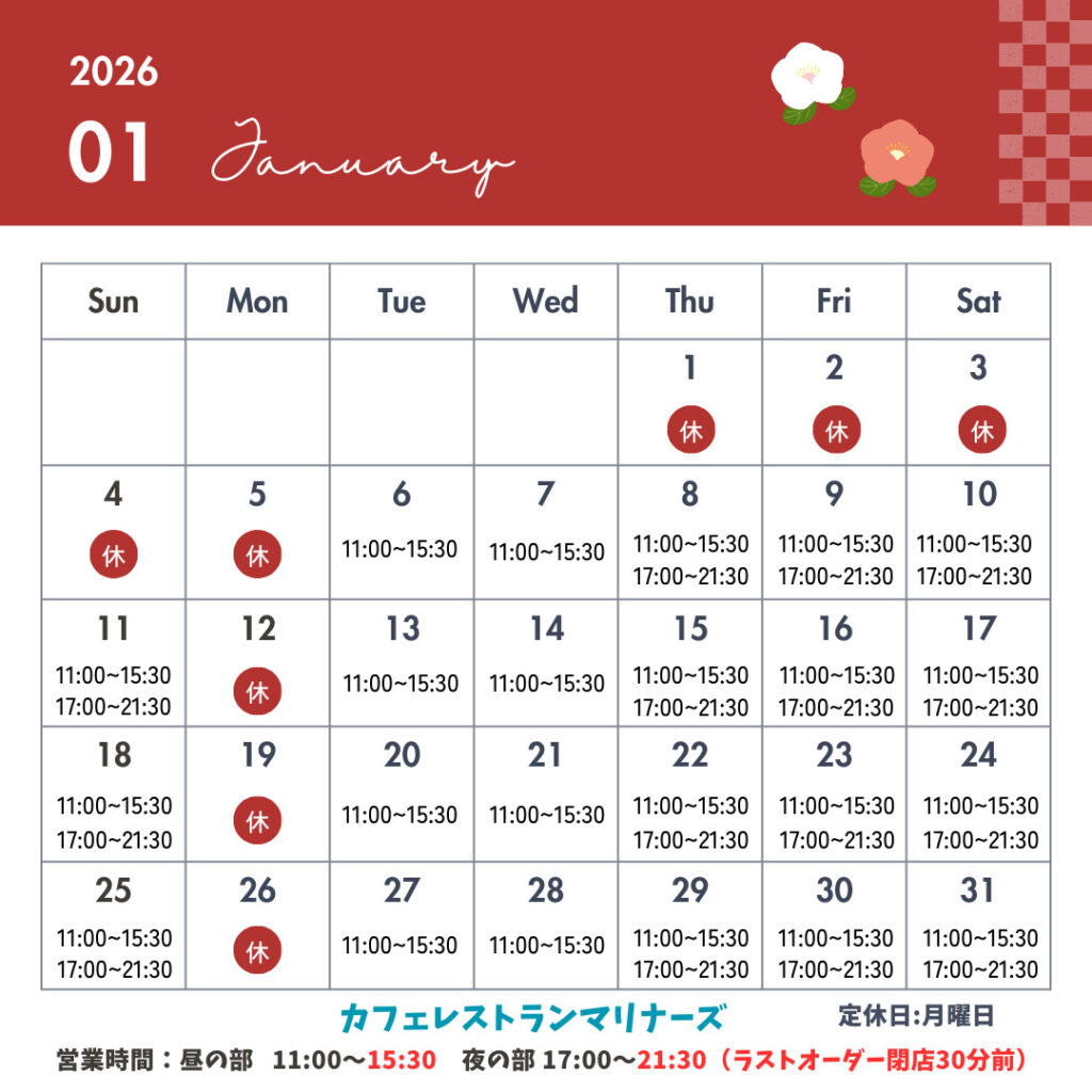 カフェレストランマリナーズ 1月の営業について